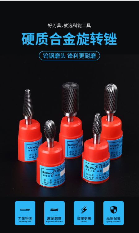 旋鋒工具硬質合金旋轉銼,亦稱硬質合金高速什錦銑刀、硬質合金模具銑刀等,與高速電磨機或風動工具配套使用。硬質合金旋轉銼用途廣泛,在機械、汽車、船舶、化工、工藝雕刻等工業(yè)部門使···